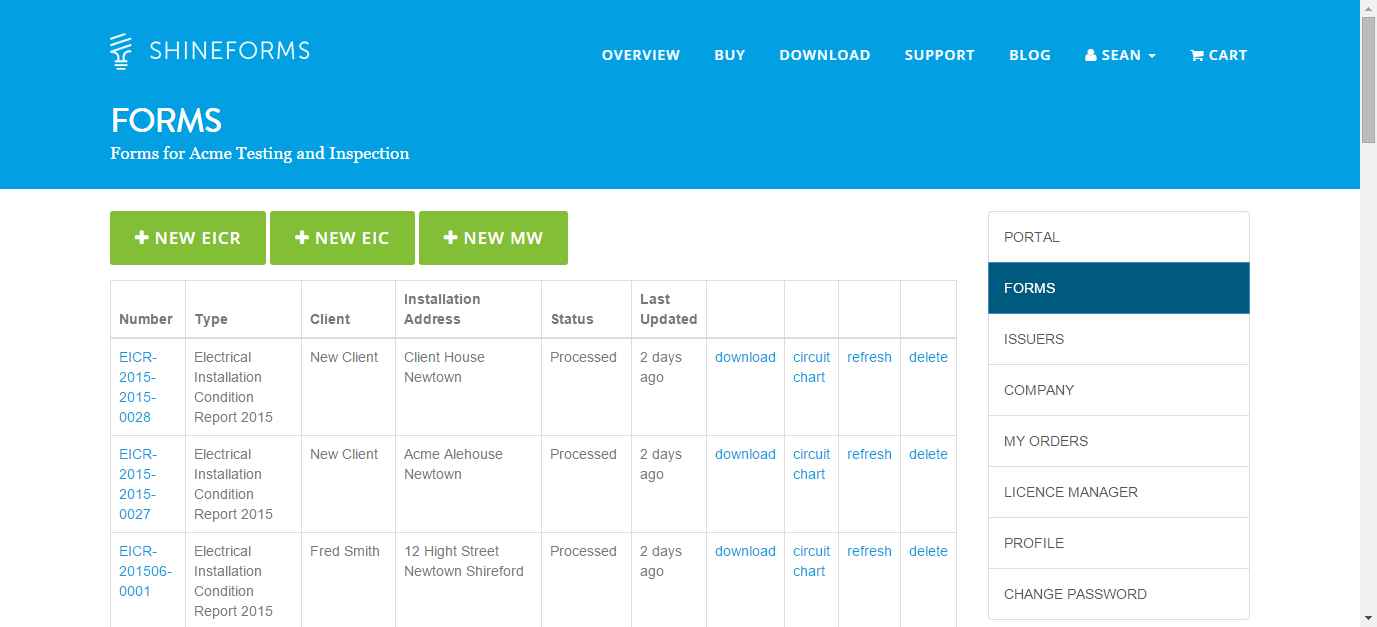 You can now create Electrical Installation Condition Report, Electrical Installation Certificate and Minor Works using the online forms.