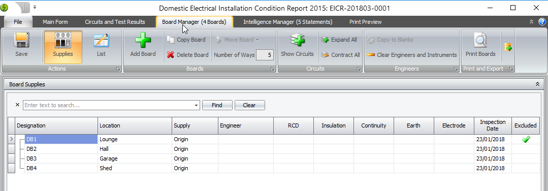 Pirform now allows you to exclude boards in EICRs and EICs from the PDF. To exclude boards, open the Board Manager and mark the board for exclusion.