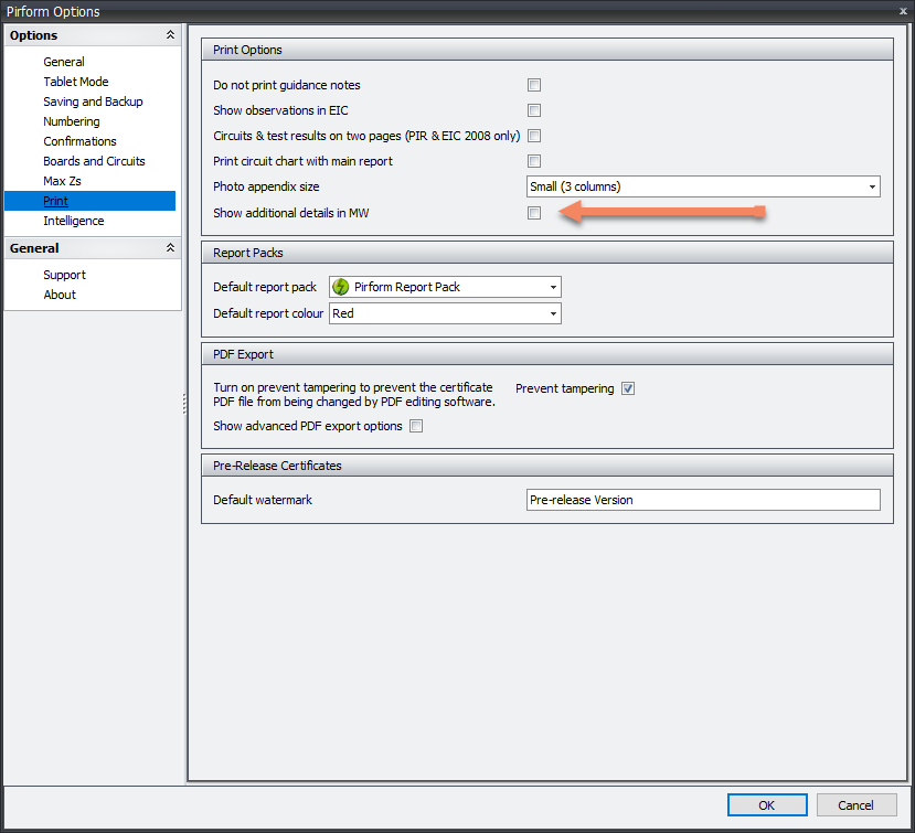 The previous one that records additional details for reporting on works in larger installations is still available and can be accessed by clicking Additional Details in the ribbon. You can select the option you prefer as your default in Pirform Options: