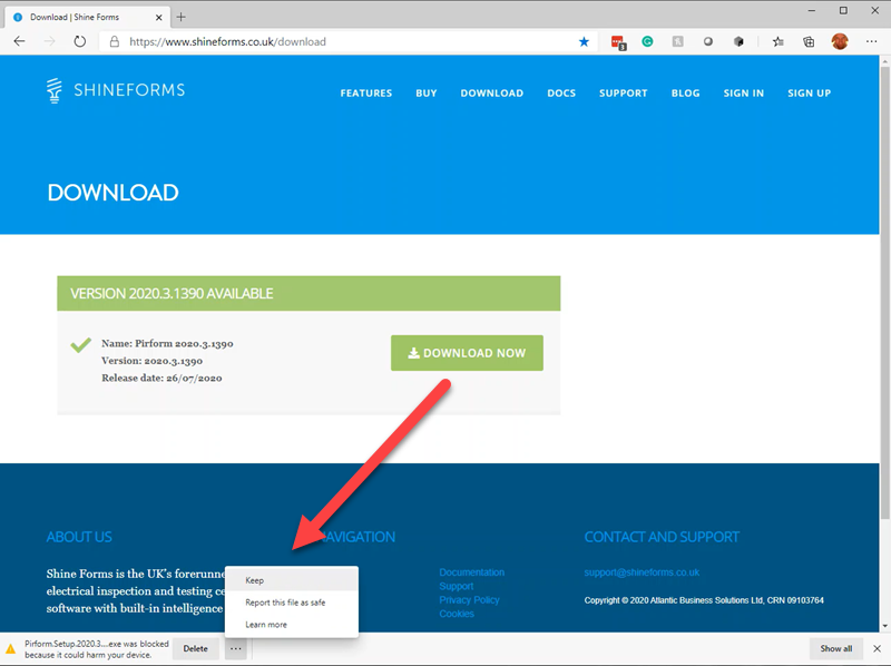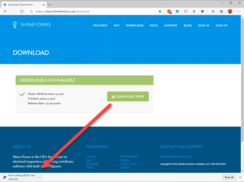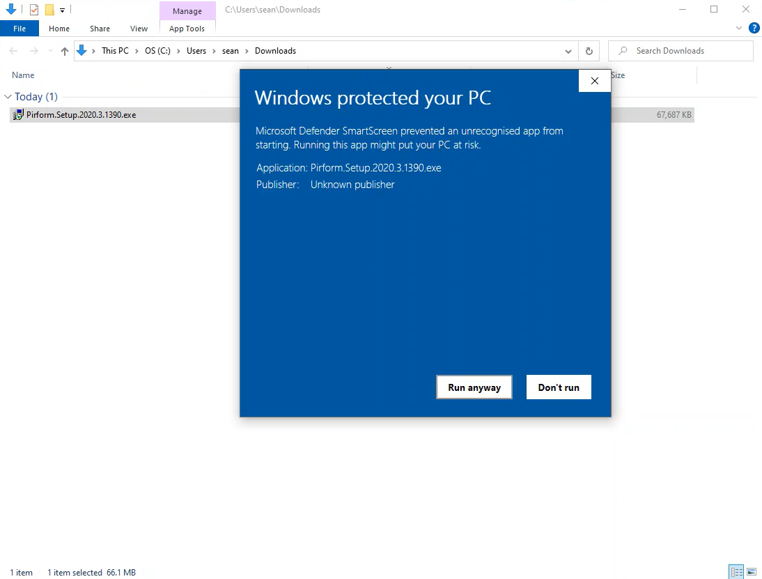 Installing Pirform has become a lot easier with the new version. To install Pirform you just click the download button and then click to open the downloaded file:
