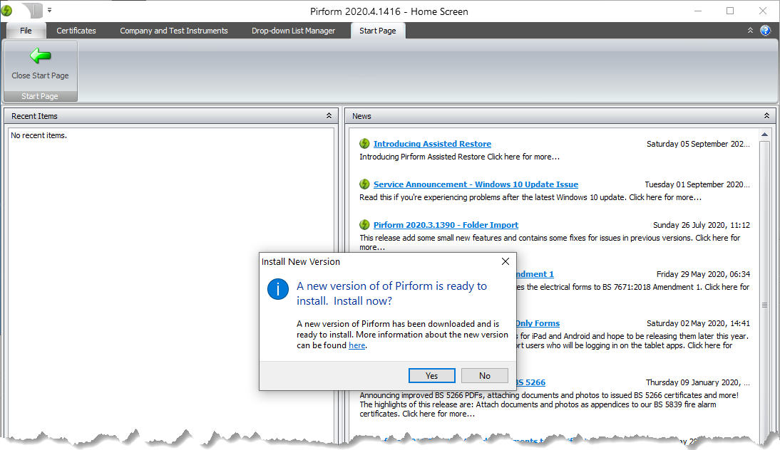 Pirform now automatically downloads updates for you. When you open Pirform it will tell you that an update is ready to install.