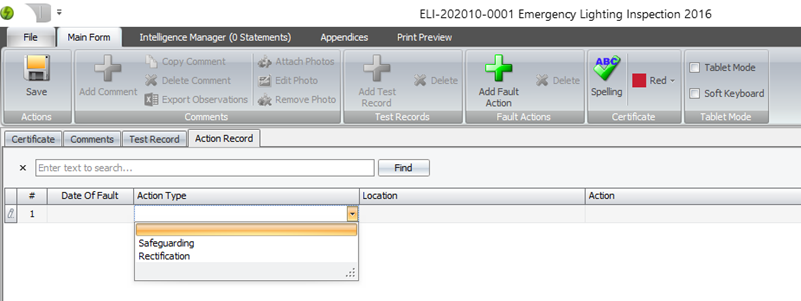 You can now select blanks in the emergency lighting inspection certificate, and also type values not in the drop-down.