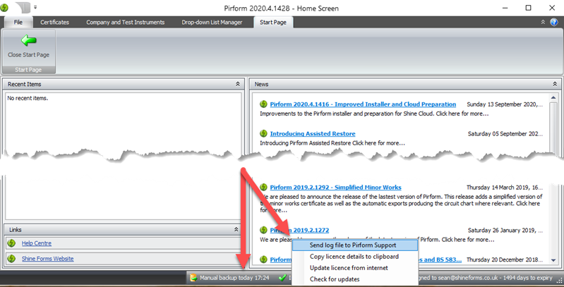 To make is easier to send the log file to our Help Desk, we’ve added a quick link from the status bar menu. Simples!