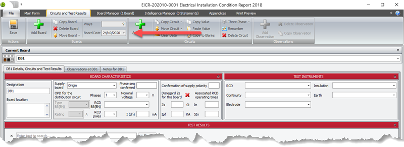 The board date is the date Pirform uses as the inspection date when you add a new boards. Keeping the board date separate from the main date of inspection because it is useful in scenarios such as when you are working on a rolling program of inspections for an installation and reporting in a single certificate.