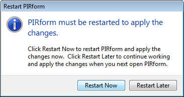 Click OK and Pirform will automatically restart to apply the changes. Note that it is Pirform that will restart - your computer will not be restarted!