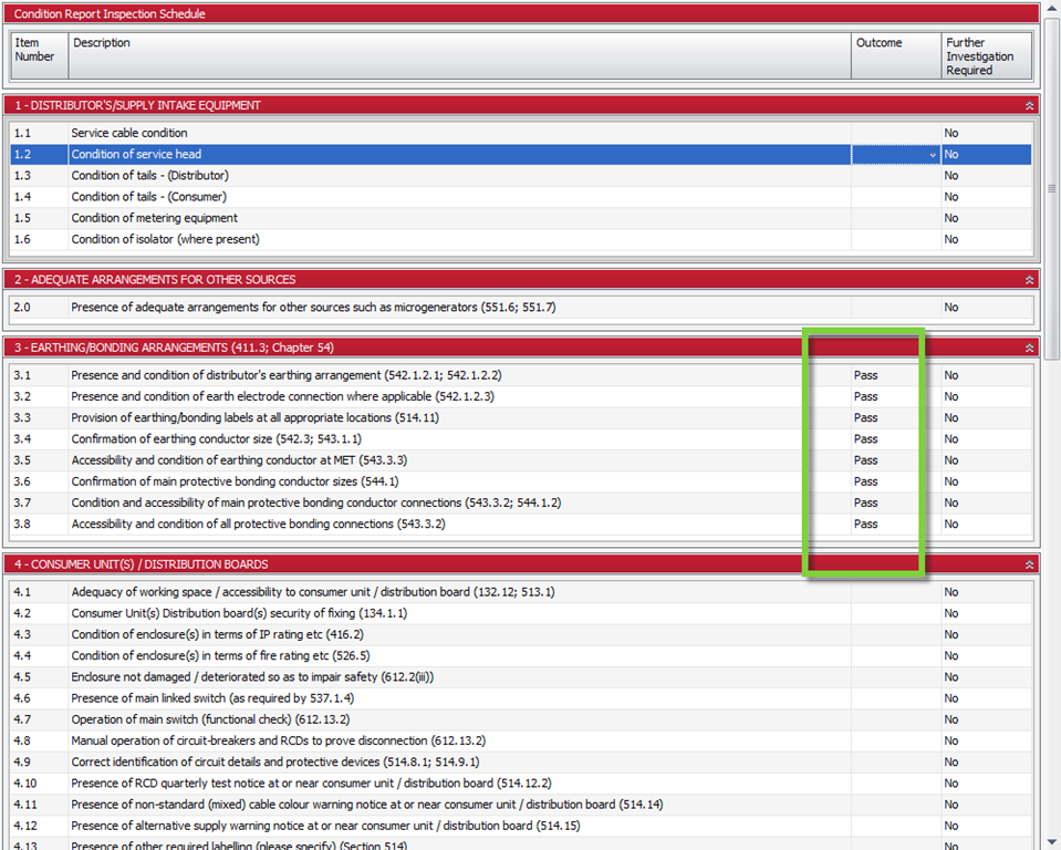 Another great feature incorporated in the Inspection Schedule Manager, is the ability to set All values in a particular section to PASS.