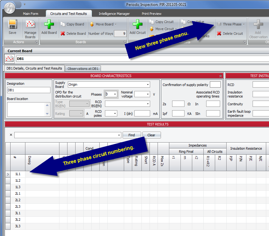 If you want to, you can also enter your own numbering for the circuits – whether the board is three phase or not. If you enter your own numbering then Pirform will stop automatically renaming the circuits.
