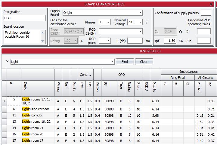 And you want to see all the lighting circuits. Just type “light” into the find box above the circuit grid and you get this: