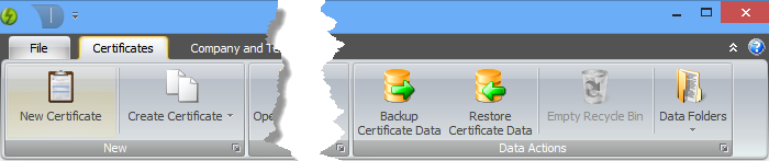 There is a new Create Certificate button on the Home Screen that gives you access to the merge, copy and create from features. There is also a button that lets you quickly open the folders that you have configured for backups, exports and certificate sharing.