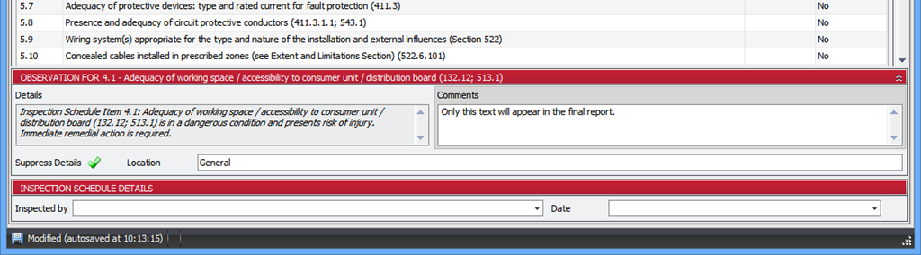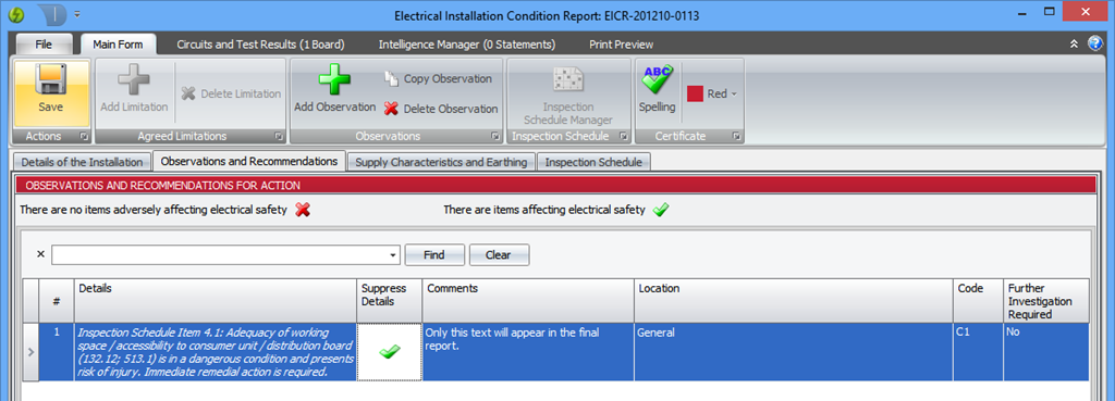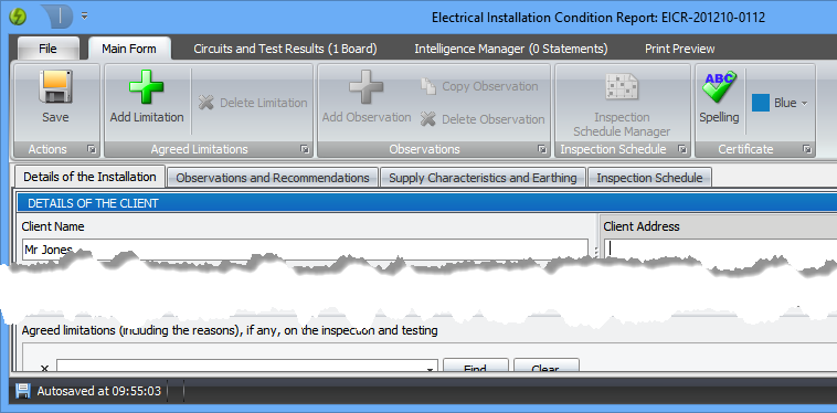 - Corrected spelling on Electrical Installation Condition Report Page 1.