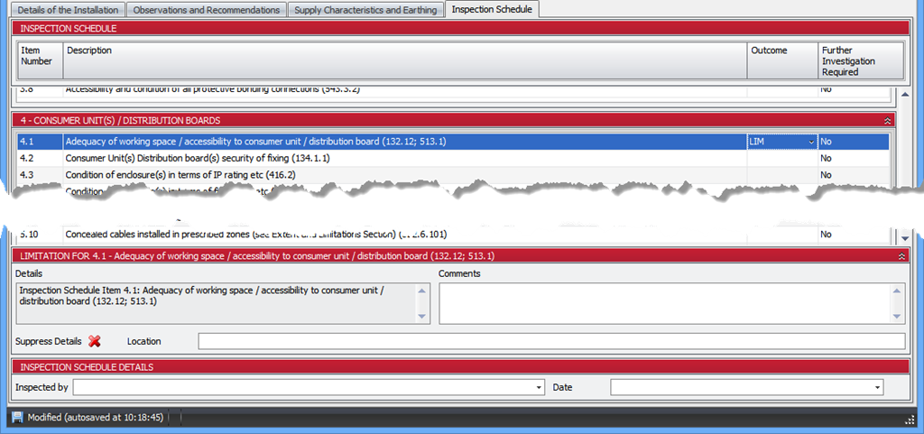 Speaking of limitations - we now add limitations for the schedule items that you code as LIM. You can work with the limitation without leaving the inspection schedule and adjust the text that appears