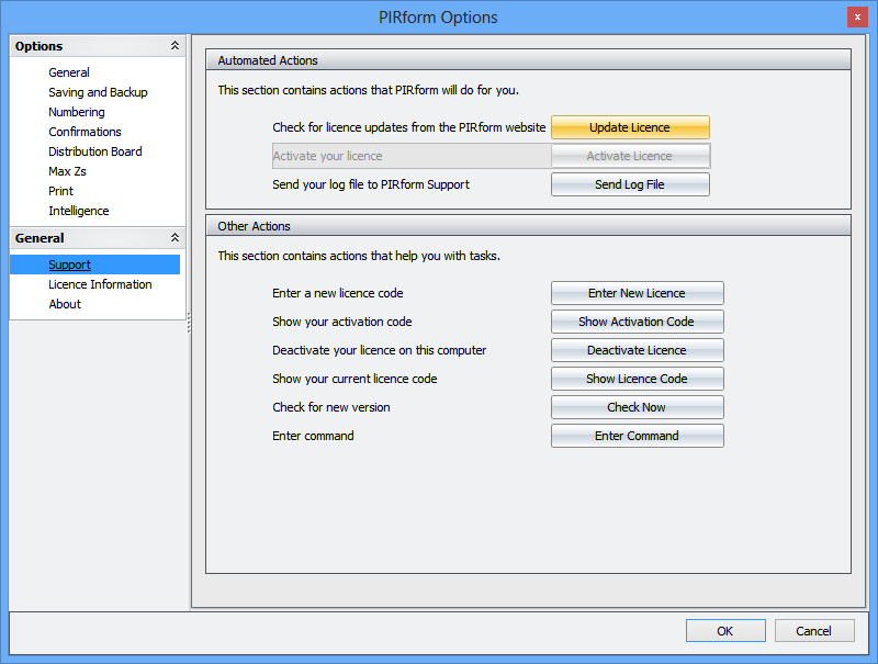 If you licence has expired, then Pirform will now check on the internet for any licence updates when it starts up. So, when you have upgraded your licence this will be applied automatically (if there is an internet connection available). You can also ask Pirform to check for updated licences at any time from Pirform Options: