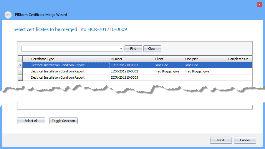 On larger installations there will often be more than one engineer doing the inspection. Pirform now fully supports this way of working and allows you to split the work up among one or more other engineers. You then just merge their work back into a single main certificate after they have completed.