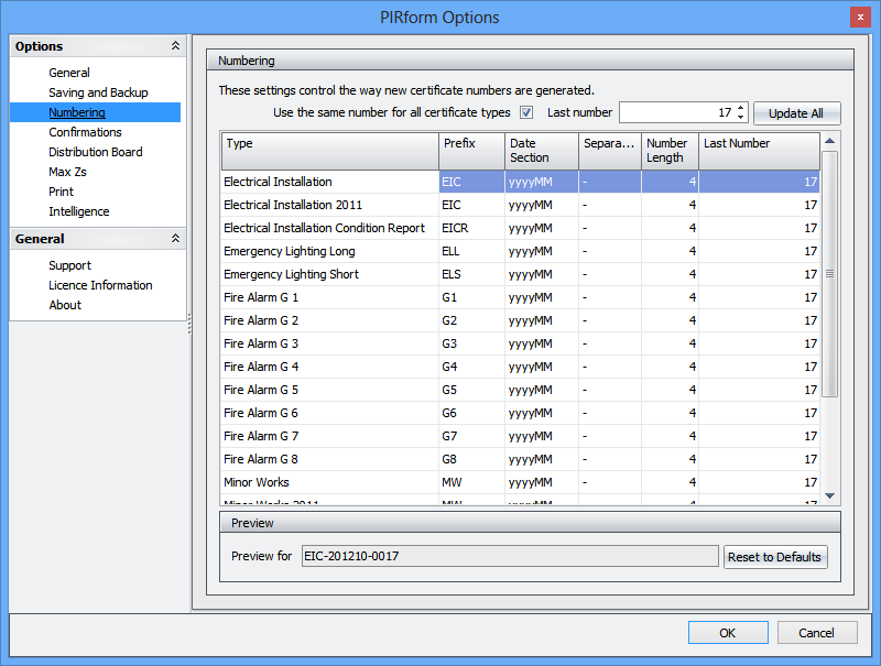 You can now change the way Pirform generates certificate numbers and you can do this individually for each certificate type.