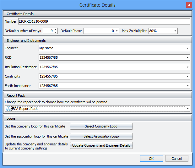 If you want to use a company or association logo for just one certificate, then now you can. In the Logos section at the bottom of the Certificate Options screen, there are buttons that allow you to select the company and association logos for just that certificate. You can also update an individual certificate to the latest company details after changes are made to company and engineer signatures from that section.