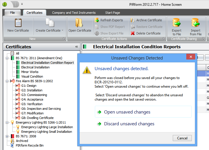 We’ve also added an automatic export feature that means that Pirform will create both a PDF and an export file every time you save it. You can set this up to use Dropbox or SkyDrive and so you’ll always have access to your certificates when you’re away from your PC. So, when you’re on a client’s site you can access your latest certificates by just logging into your Dropbox or SkyDrive account on your iPad and open up the latest certificate there and then.