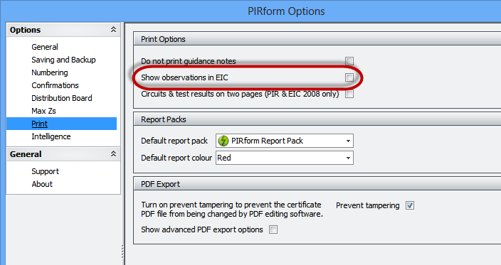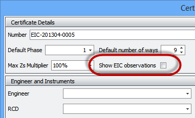 Some customers have asked to be able to include observations along with their EICs. There is now a setting that allows you to do that. Open the EIC and go to the certificate options