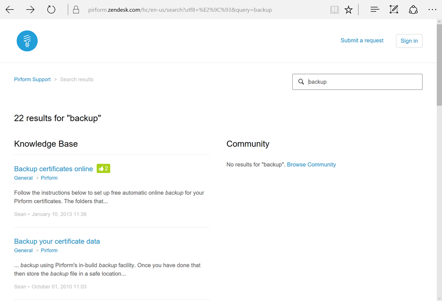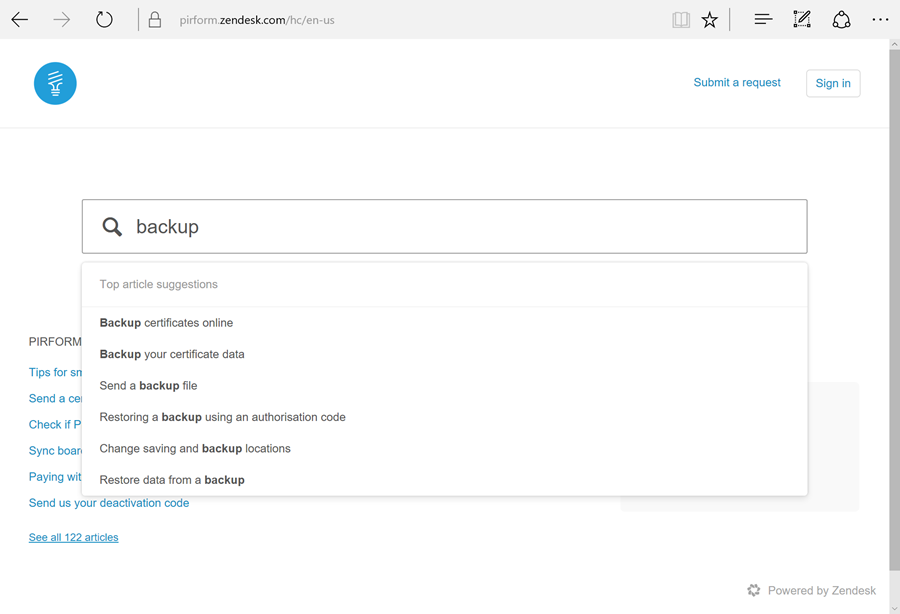 Search shows matching articles as you type:
